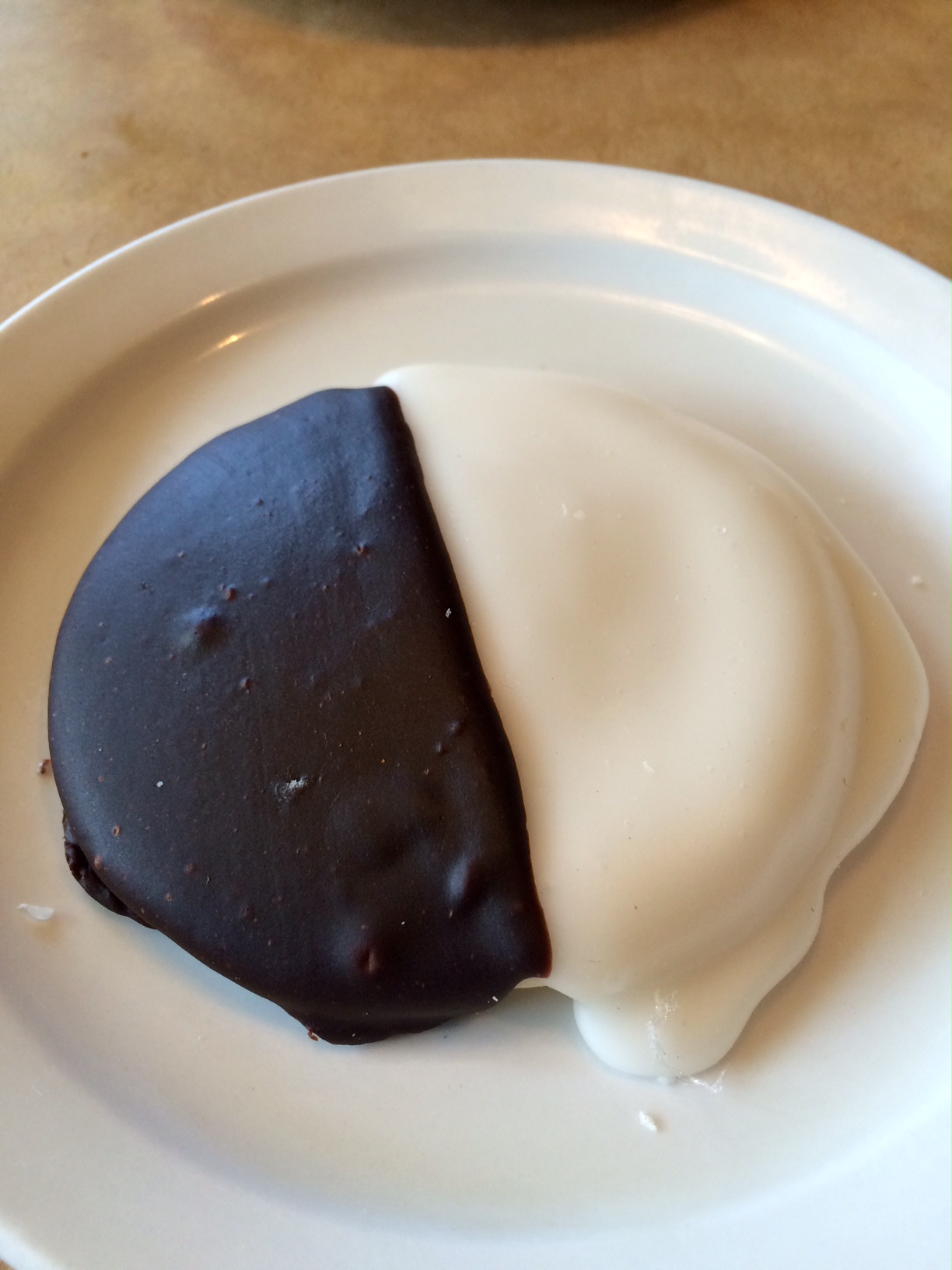 Although we were sufficiently satisfied from all that we had eaten, Macie asked us if we’d like to try any of their desserts. We had to try the famous Black & White cookie, how could we not?!?