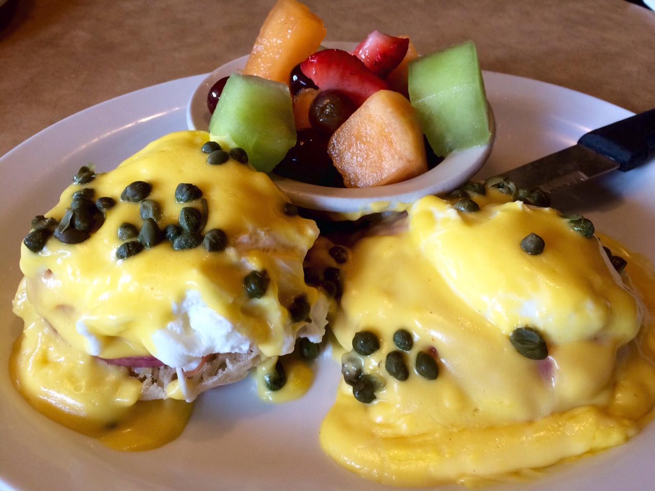 The Nova Salmon Benedict caught my eye. It was made with poached eggs on an English muffin (which did an excellent job mopping up all that wonderful Hollandaise sauce in its nooks & crannies) with smoked Nova salmon, red onion, tomato & capers, topped with Hollandaise sauce. Another outstanding dish. A wonderful cross between a lox, bagel & cream cheese and an eggs benedict!