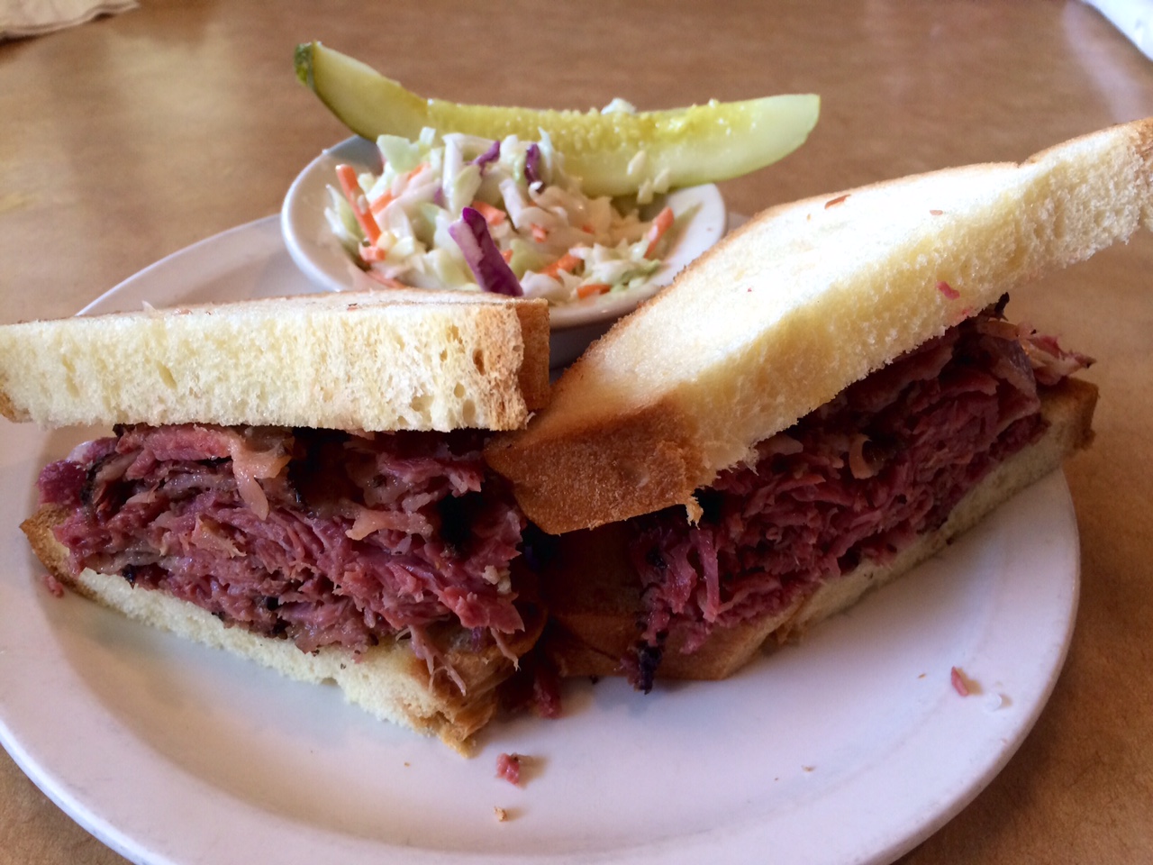 To get a full range of what this famous deli has to offer, I insisted that my friend try one of their sandwiches. We chose the classic hot pastrami which was seasoned, cured and piled sky high and served on our choice of bread, thickly sliced challah. This dish delivered on all accounts.