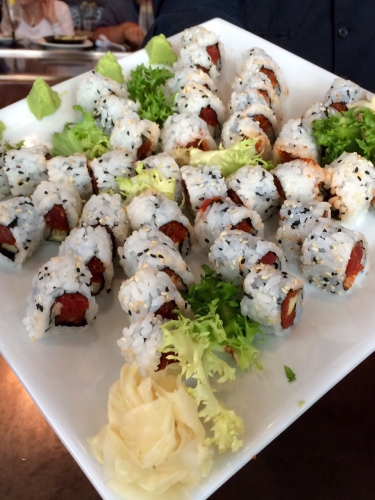 Next, a couple of trays of sushi (spicy tuna roll and CA roll) were brought out. To me, they were pretty standard, nothing that really delivered a WOW factor. They do have quite an impressive list of sushi rolls on the menu however, so I will have to come back and try some of the more exotic offerings.