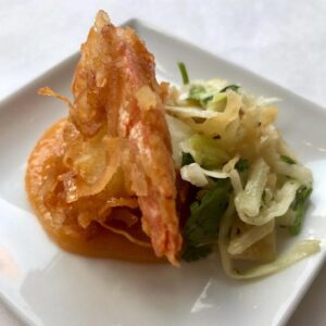 Coconut Shrimp..Tiger Shrimp coated in light beer batter with shredded coconut, accompanied by a Mango Chutney and Island Slaw composing of cabbage, red onion, cilantro, jicama and dressed with a lime vinaigrette. I am in love with this “world famous” appetizer dish and could eat it all day long. But today, I had to resist and just have the one-biter presented to me so I could move on…