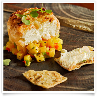 Macadamia Nut Crusted Goat Cheese…Laura Chenel Chevre coated in toasted Wailea Valley Plantation Macadamia Nuts warmed in Clarified Butter and served with a Papaya Mango Chutney and Soy Glaze paired with Lavash Flatbread. The combination of Macadamia nuts, clarified butter and goat cheese was amazing and the sweetness from the mango salsa truly made my tastebuds get up and do the Happy Dance. This is an awesome appetizer dish!