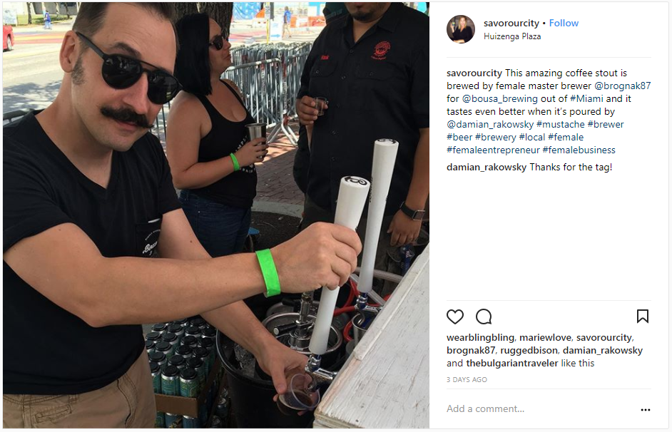 The outdoor event moved to Huizenga Plaza in downtown Ft. Lauderdale this year. The new venue allowed for more breweries and more than doubled the capacity. This not-so-secret gem of a festival was brimmed with tasty local breweries. And the best part is that this Brewfest was specifically aimed at highlighting women in the beer industry as all the businesses were women-owned or founded. One brewery featured a female master brewer, Kayla Brogna, of Bousa Brewery in Miami. We tried their coffee stout and found it was the perfect sip to start the day off!