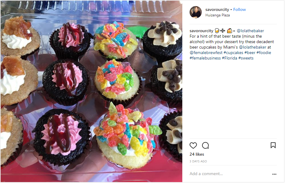 Finally, what beer fest would be complete without some beer-infused sweets? We found this eye candy by Lola The Baker at the festival. Her beer cupcakes are divine and come in fun flavors including; Fruity Pebbles, Chocolate Raspberry, French Toast Maple Bacon, and Chocolate Cookie Dough. Her custom bakery in Miami even has gluten-free and vegan desserts!