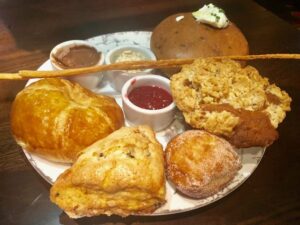 So we were off to a good start. Julia explained the menu to us and it was difficult I must say to choose because so many items caught my eye. The bread basket contained an assortment of baked items which offered a good variety, so we chose that. OMG, without exaggeration, my friend and I ate one bite of the banana nut muffin and our eyes truly bugged out. It was without a doubt the best banana nut muffin we both had ever eaten. Man, I am salivating just a little right now as I recall how scrumptious it was, lol!