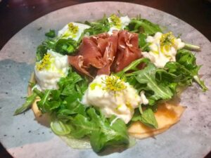 • Yellowtail Crudo passionfruit splash, crispy shallot, radish, micro cilantro, grapefruit, herb oil ($16)