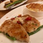 HOUSE-MADE MEATBALLS bin 90 Rich Tomato Sauce, Burrata Dolce, Basil, Extra Virgin Olive Oil, Grilled Polenta CrostiniTRIO OF MEDALLIONS* bin 80 Horseradish, Bleu Cheese, and Parmesan-Crusted Filet Medallions, Mary’s Potatoes, AsparagusDana’s Parmesan crusted chicken Tomato Basil Relish, Lemon Butter, Betty’s Potatoes, Garlic Green Beans