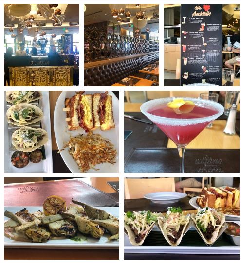 One of the restaurant groups we work with in Miami, V & E Restaurant Group has a couple restaurants in Las Vegas that we decided to check out. We went for brunch at Cafe Americano located inside Caesar’s Palace. They are doing a fantastic job serving up classic American fare with a Latin twist and bonus, they’re open 24/7. Woo hoo!!! We were warmly greeted and brought to a lovely table near the back which was nice and bright with a lot of natural light coming from the floor to ceiling windows. The GM Gerardo surprised us with a Blueberry Lemondrop Martini which was sooooo delicious. I would highly recommend it. After scanning the menu, we decided to share the grilled artichoke hearts which came with 8 pieces to an order with a balsamic glaze and basil pesto for dipping. I could have stopped right there and gone home happy. But wait, there’s more…We ordered the breakfast sandwich on a buttered and toasted brioche bread. Our server Raul had recommended we sub the bacon which comes with the sandwich for their house bacon instead. I’m glad he made that suggestion, because we enjoyed the sandwich and the bacon very much. We also had the steak tacos. Shaved rib eye, avocado salsa and Cotija cheese. It was excellent. I was so enamored with the balsamic glaze they used with the artichokes that I asked for an extra side of it which I also used on my tacos. Yumm!!!