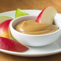 Enjoy the crisp sweetness of apple slices by dipping them into peanut butter. This simple yet satisfying snack is perfect for a quick pick-me-up during the day.