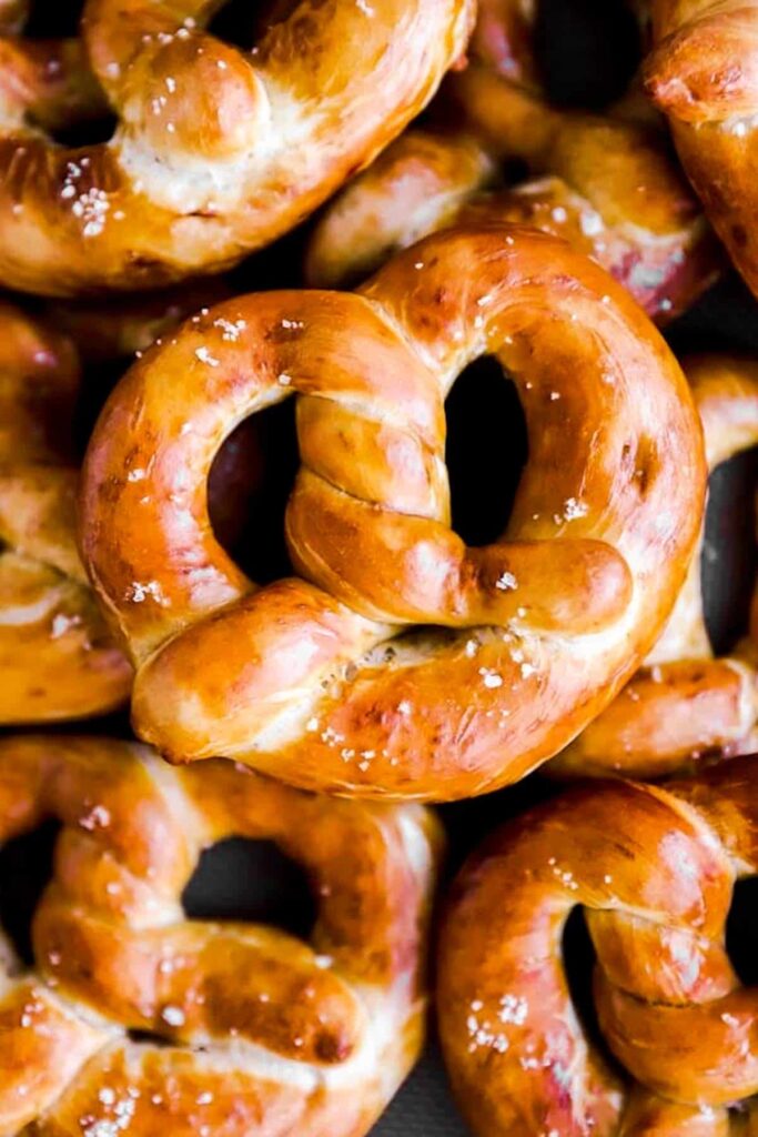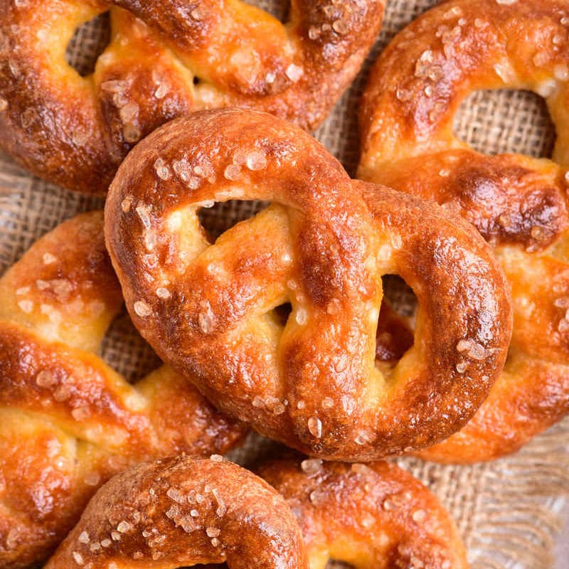 Traditional pretzels, with their characteristic twisted shape, are made from a simple dough of flour, water, yeast, sugar, and salt. The dough is shaped into loops, briefly boiled in a baking soda solution, and then baked to golden perfection.