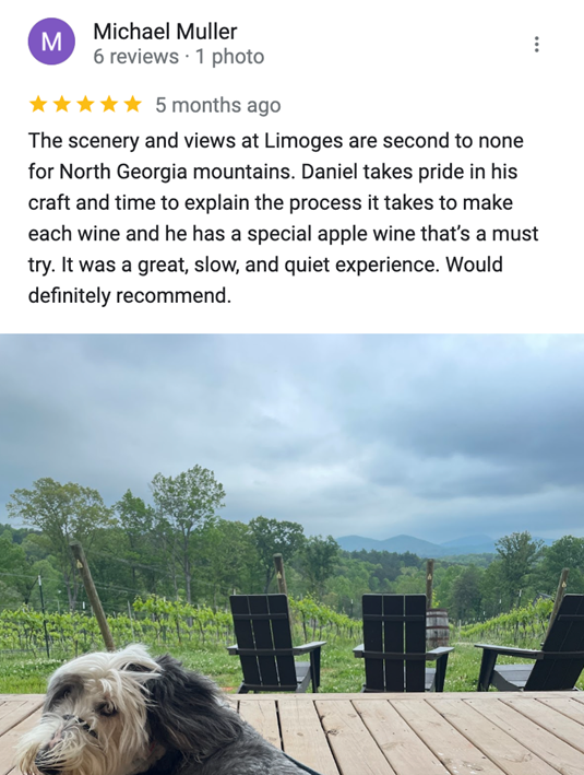 And it’s not just the wines that draw visitors. [3] Daniel and his wife, Kristina, have personally built much of the winery themselves – from planting the vines to constructing the tasting room. This hands-on approach is reflected in the attention to detail and warm hospitality that guests rave about. With consistent 5-star reviews, Limoges Cellars is quickly becoming a must-visit destination on the North Georgia wine trail.